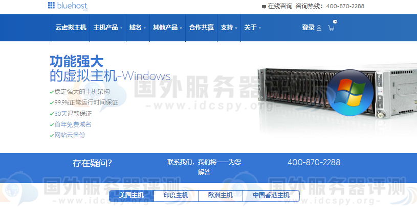 BlueHost支持的数据中心有美国、香港、印度和欧洲四个机房,在数据中心上BlueHost支持更多一点。