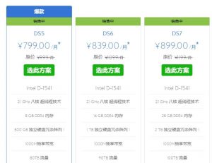 目前BlueHost中文站提供了三款美国站群服务器方案,三款方案均采用Intel D-1541处理器、2.1 GHz八核超线程技术,整体性能配置较高。这三款站群服务器主要区别在于内存、硬盘和流量等方面,不同的配置足以满足各种中小型网站的托管需求,具体详细参数配置如下: