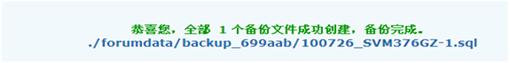 备份完成后会提示备份的路径,请尽快下载并在空间中删除.sql备份文件,但是这样备份的缺点是如果论坛数据量较大的话,会产生几十个备份文件,后续整理上会很麻烦,消耗时间也非常长。另外还需要备份ucenter的头像目录及discuz的上传目录。