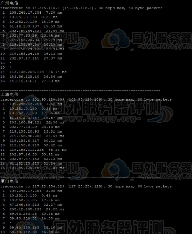 4、全国PING值延迟测试:平均位于40ms左右,国内延迟很低,访问速度较快