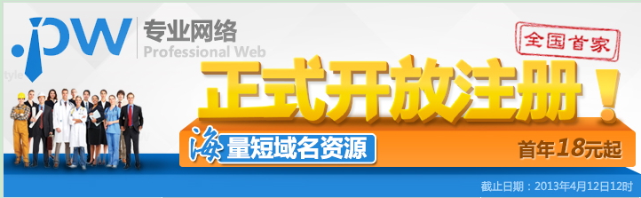 太平洋岛国帕劳共和国的国别域名后缀pw于2013年3月25日正式开放注册了。pw域名又被解释为:professional website,中文意义表示专业网站。所以自从这个域名开始接收预注册起就受到了广大站长的追捧。