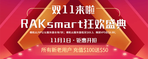 万众瞩目的双十一购物狂欢节开始啦!美国服务器租用商RAKsmart推出双十一钜惠活动。活动期间,美国服务器$30低价秒杀,爆款裸机云服务器低至$69;云服务器全场7折优惠,并可享首月半价;VPS产品全场7折,爆款VPS仅0.99美元秒杀;新增硅谷、洛杉矶、日本站群及裸机云站群产品抄底价热卖;购买RAKsmart机房服务器(独立服务器、云服务器、VPS等)免费赠送.com域名和SSL证书;与此同时还 […]...