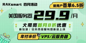 RAKsmart四月特惠开启,超多产品折扣!美国服务器E3-1230(16G+1T HDD)秒杀价$29.9/月,VPS年付低至$1.99/月,另有裸机云、云服务器、大带宽服务器及新上线的新加坡/马来西亚服务器优惠。此次活动力度给力,抢购从速,机会难得,点击下方链接即可快速购买,赶紧行动吧! 活动地址:RAKsmart官网 活动一:RAKsmart新用户秒杀专区:美国服务器低至$29.9/月 产品 […]...