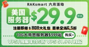 大家翘首以盼的618年中大促来了,RAKsmart这次同样带给大家多种优惠促销,不但有RAKsmart美国服务器$29.9秒杀,国外VPS低至$1.99起;而且还有RAKsmart美国10G大带宽服务器$399起和RAKsmart美国VPS/云服务器/服务器年付5折起;与此同时还有RAKsmart日本服务器/日本裸机云下单立减$30;RAKsmart马来西亚/新加坡服务器上新优惠,多种优惠等你来抢 […]...