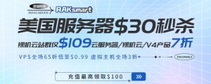 熟悉RAKsmart的朋友应该都知道,RAKsmart几乎每个月都会推出月度优惠活动。近日,RAKsmart 8月份的活动如期而至,本次活动内容包括美国服务器E3-1230仅$30秒杀、云服务器和裸机云全场7折优惠、VPS全场65折、独享虚拟主机新品上线全场3折、新老客户充值最高可领100美金等。 活动时间:美国西岸圣何塞时间 08/01/2023~08/31/2023 RAKsmart优惠码:( […]...